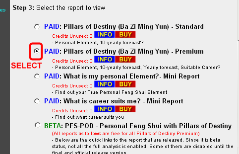 • Select the PAID: Pillars of Destiny (Ba Zi Ming Yun) - Premium